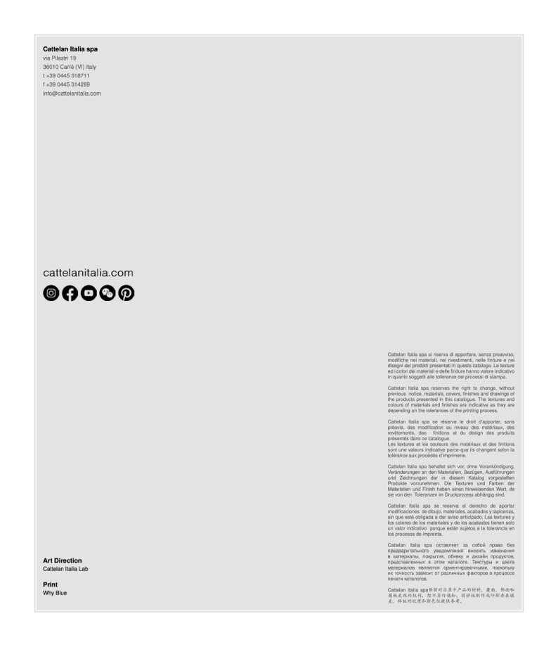 Cattelan Italia spa保留对目录中产品的材料、覆面、饰面和