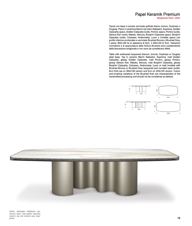 steel base. Top in ceramic Marmi Alabastro, Supreme, matt Golden