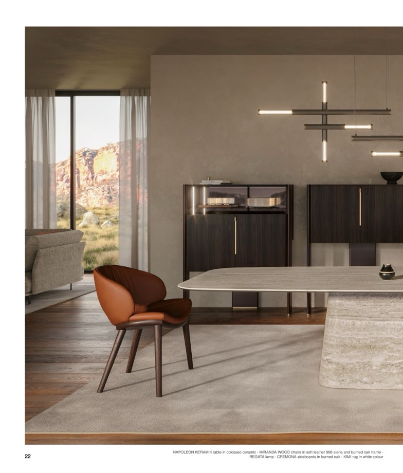 NAPOLEON KERAMIK table in colosseo ceramic - MIRANDA WOOD chairs in soft leather 996 siena and burned oak frame -