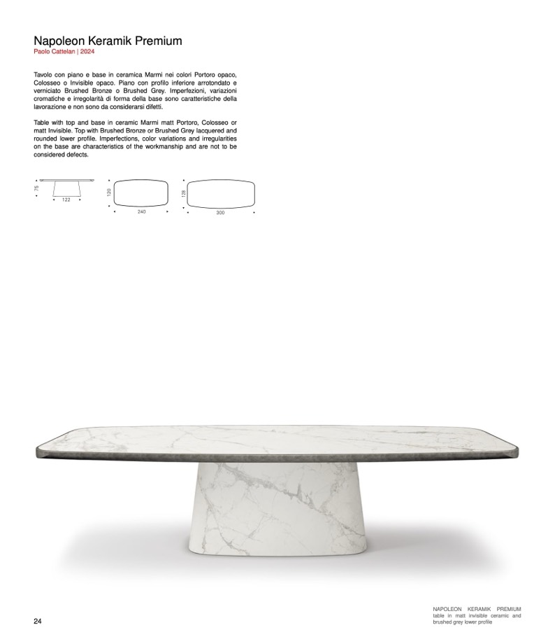 Table with top and base in ceramic Marmi matt Portoro, Colosseo or