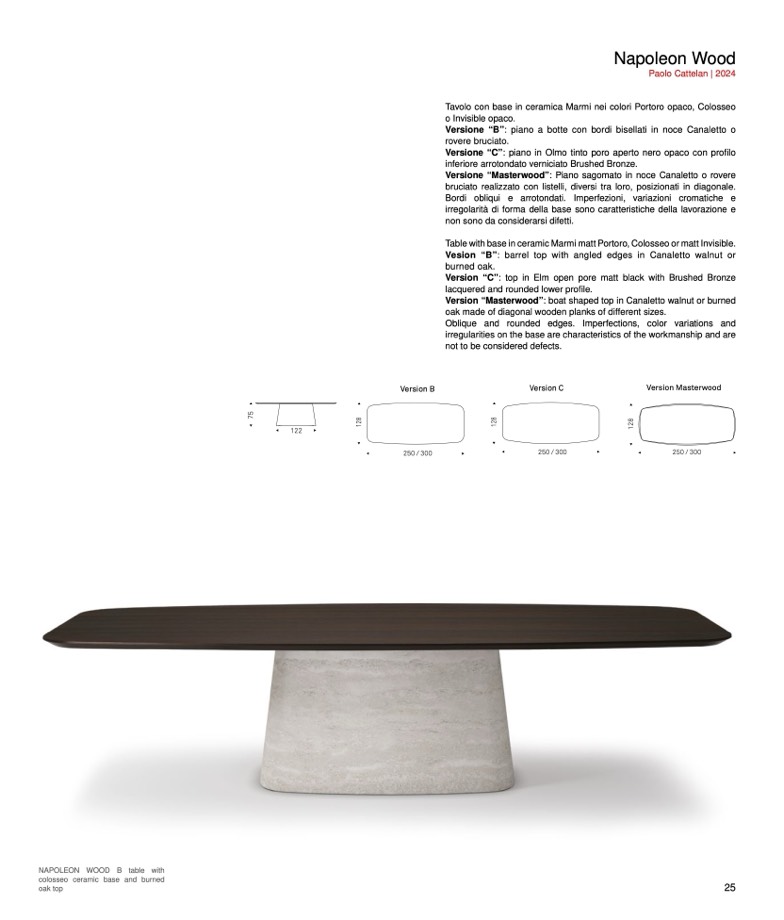 Version “Masterwood”: boat shaped top in Canaletto walnut or burned