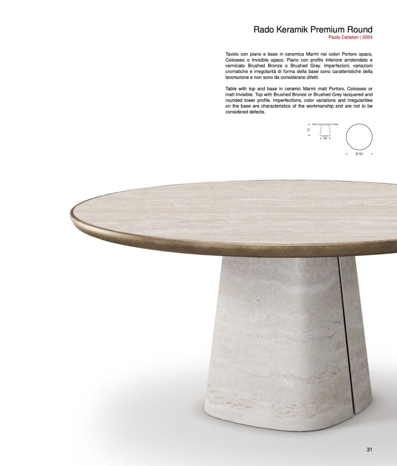 Table with top and base in ceramic Marmi matt Portoro, Colosseo or