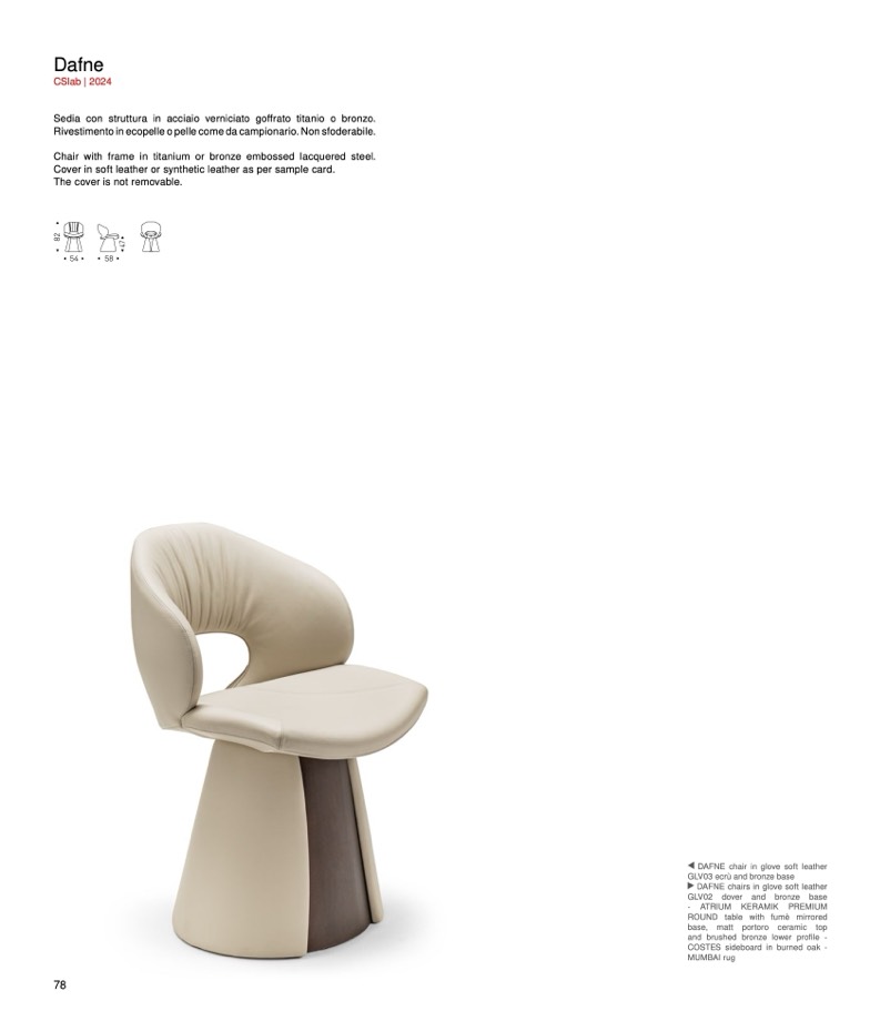 Rivestimento in ecopelle o pelle come da campionario. Non sfoderabile.