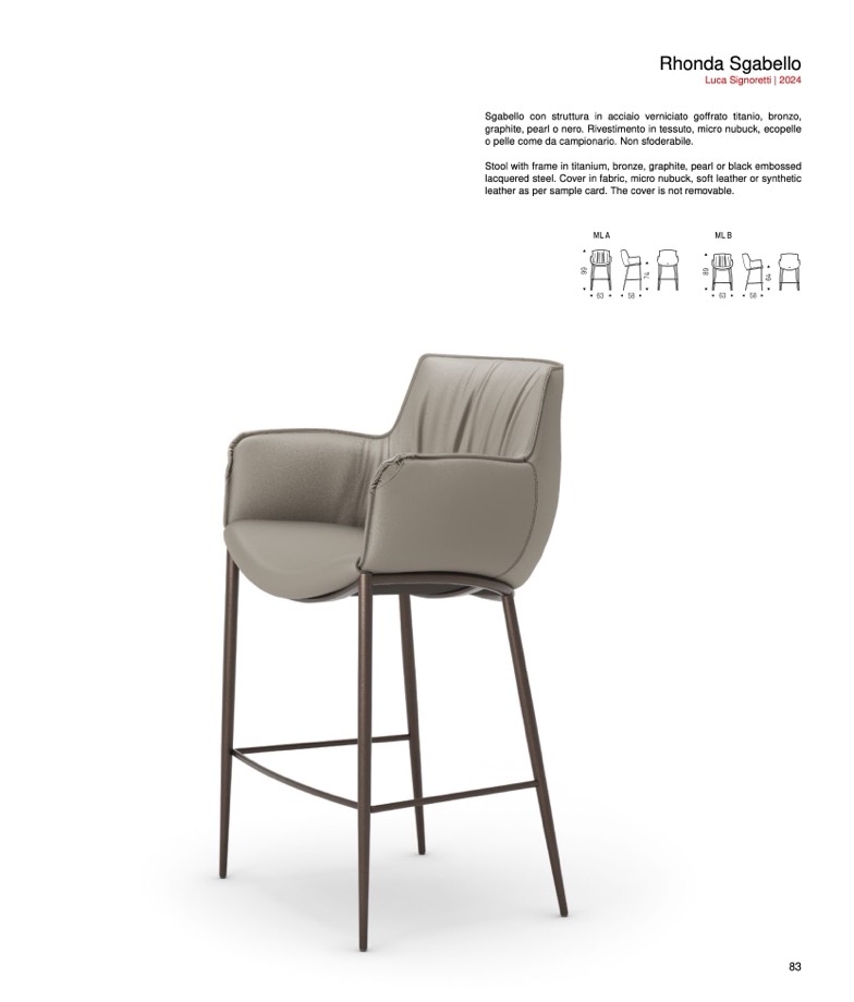 lacquered steel. Cover in fabric, micro nubuck, soft leather or synthetic