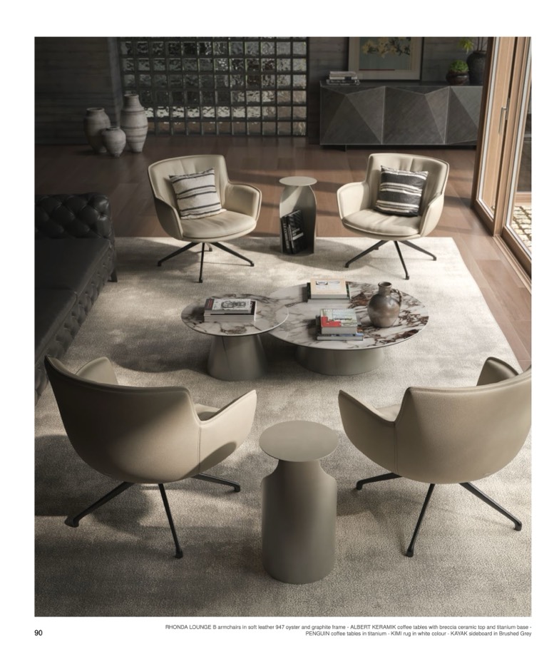 RHONDA LOUNGE B armchairs in soft leather 947 oyster and graphite frame - ALBERT KERAMIK co