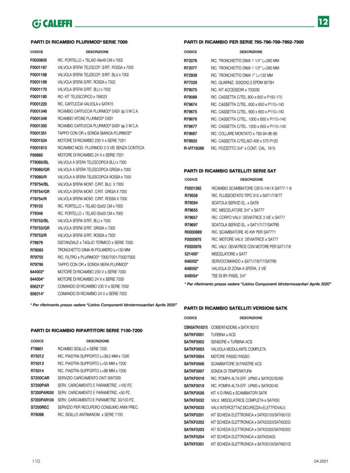 * Per riferimento prezzo vedere “Listino Componenti Idrotermosanitari Aprile 2020”