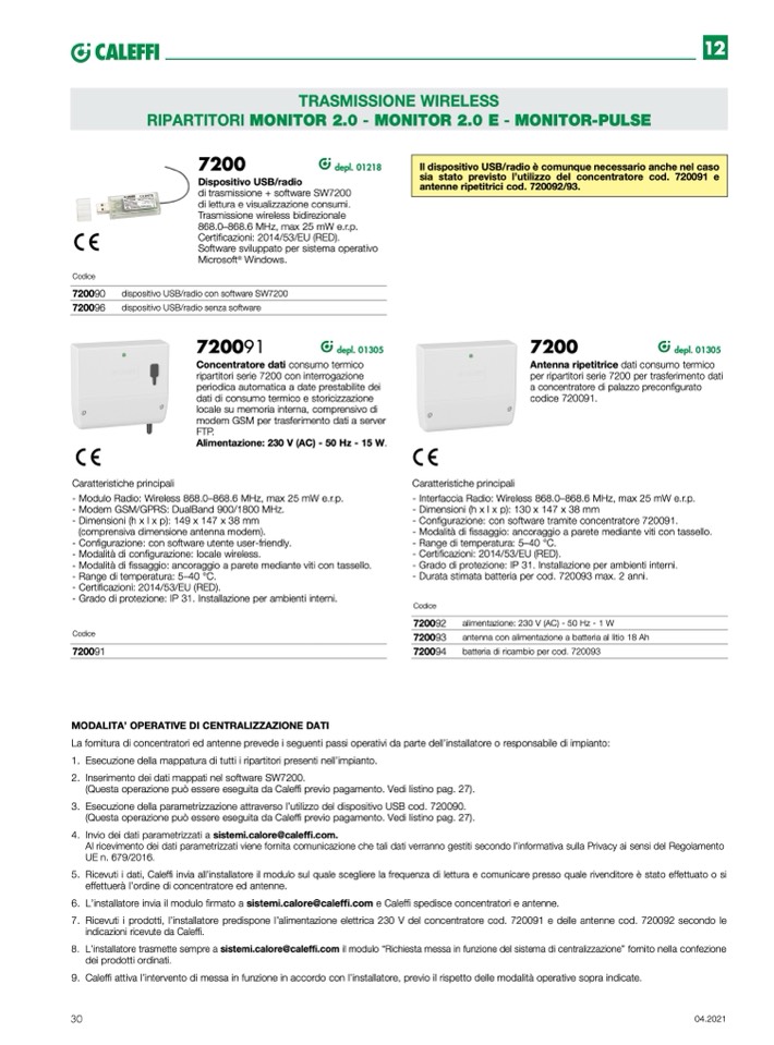 per ripartitori serie 7200 per trasferimento dati