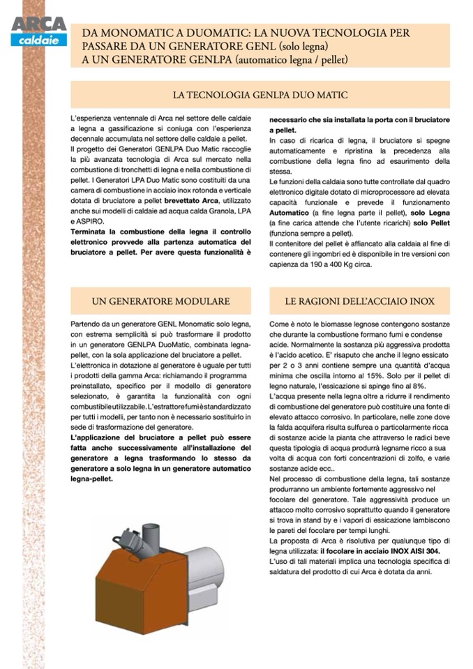 dotata di bruciatore a pellet brevettato Arca, utilizzato