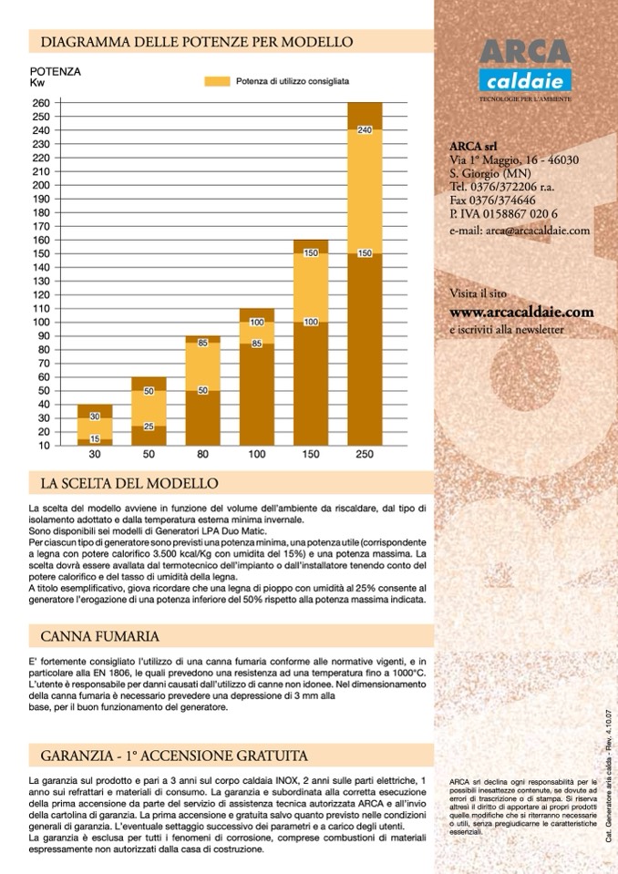 a legna con potere calorifico 3.500 kcal/Kg con umidita del 15%) e una potenza massima. La