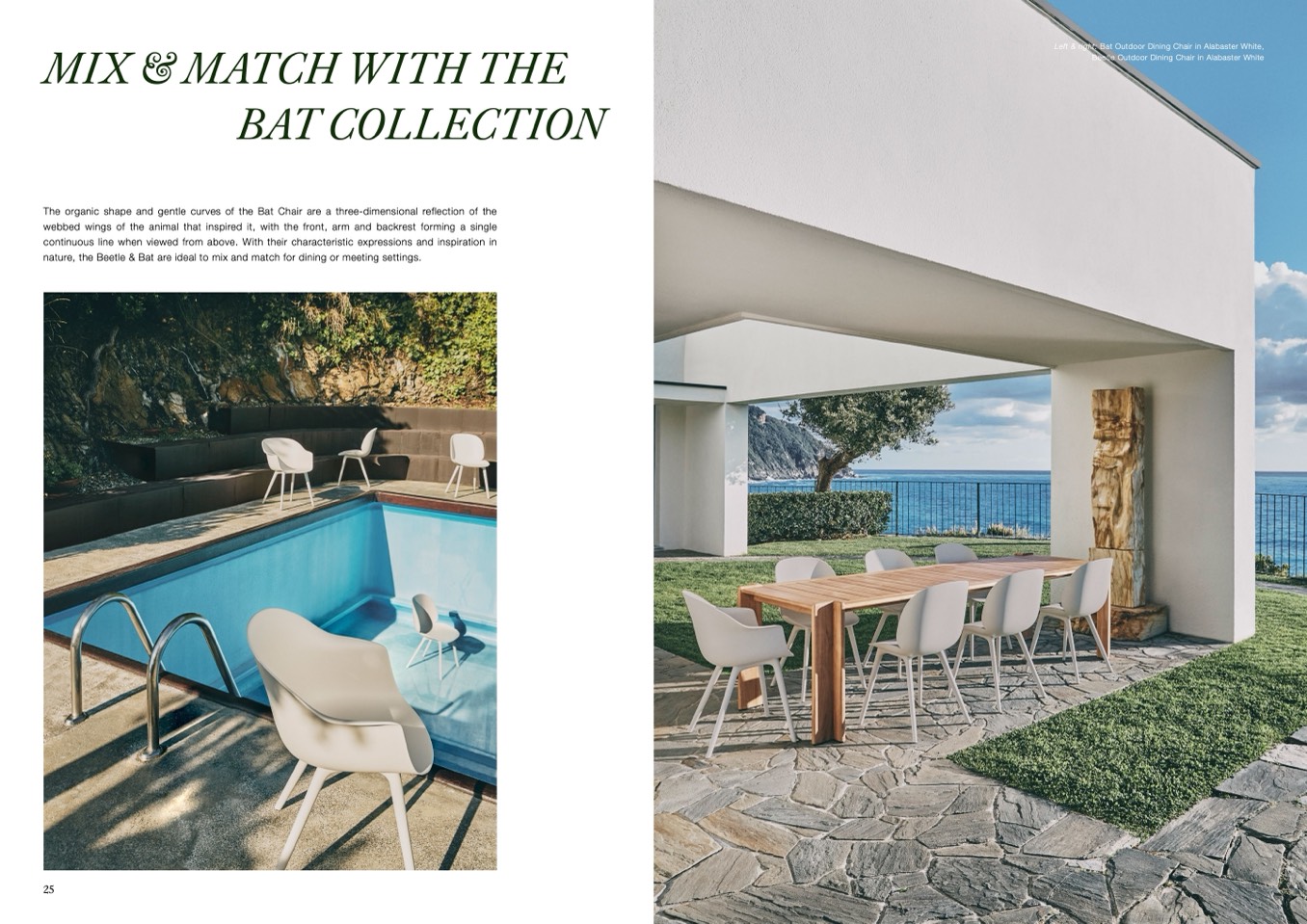 Left & right: Bat Outdoor Dining Chair in Alabaster White,