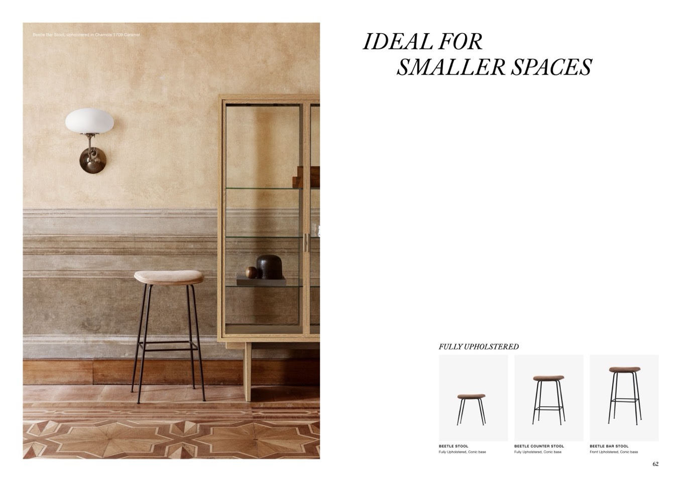 Beetle Bar Stool, upholstered in Chamois 1709 Caramel
