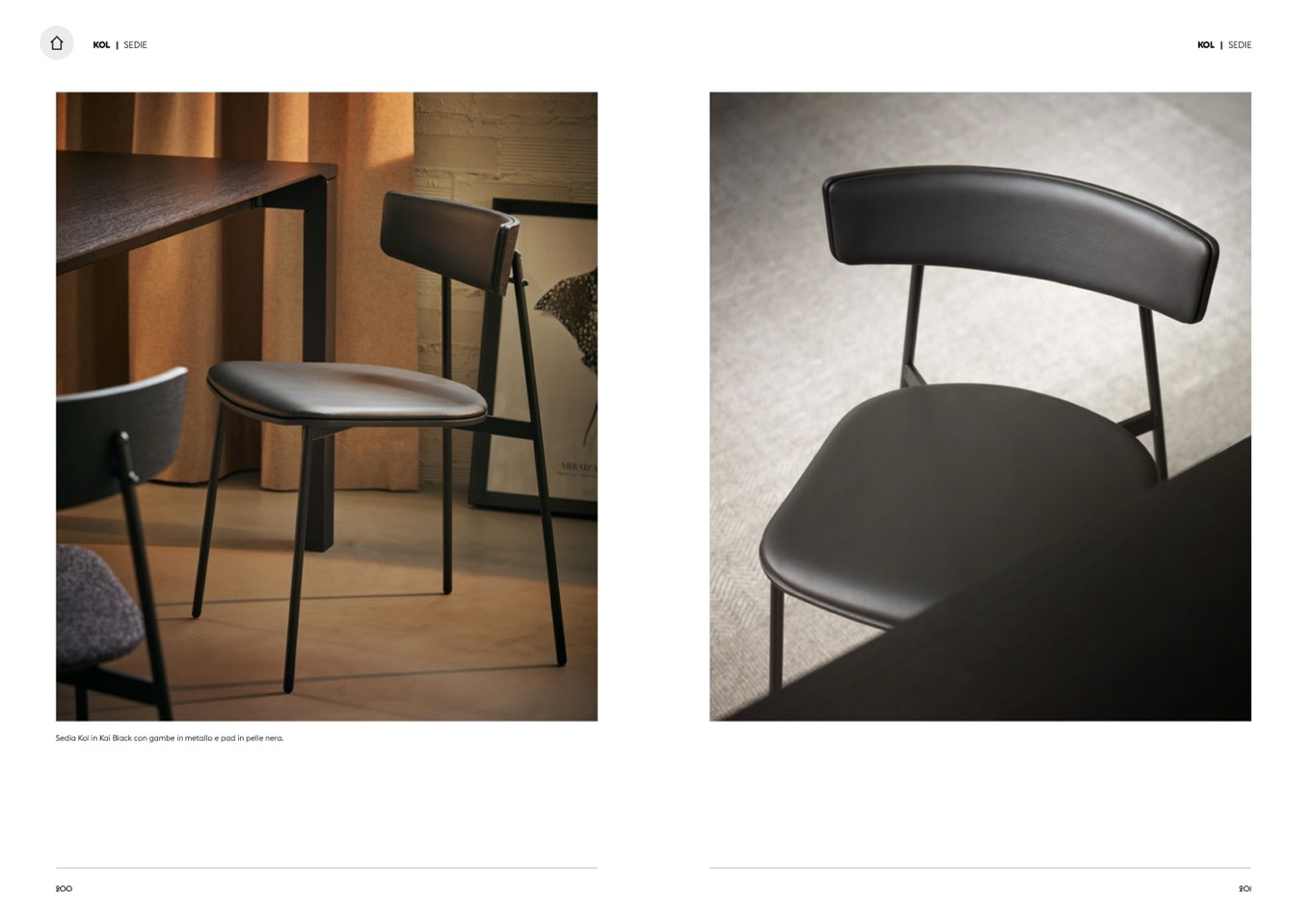 Sedia Kol in Kai Black con gambe in metallo e pad in pelle nera.