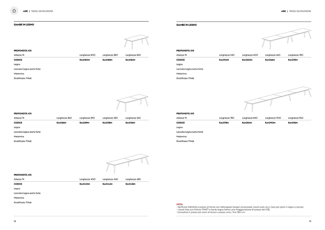 - I tavoli Aise con finitura TMATT e bordo legno hanno una maggiorazione di prezzo del 10%.