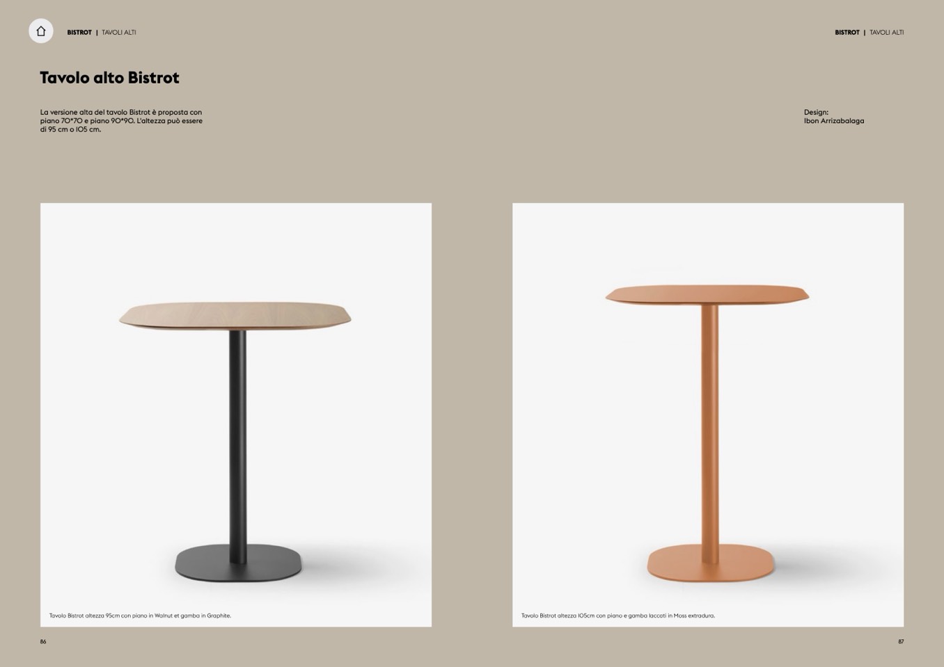 Tavolo Bistrot altezza 95cm con piano in Walnut et gamba in Graphite.