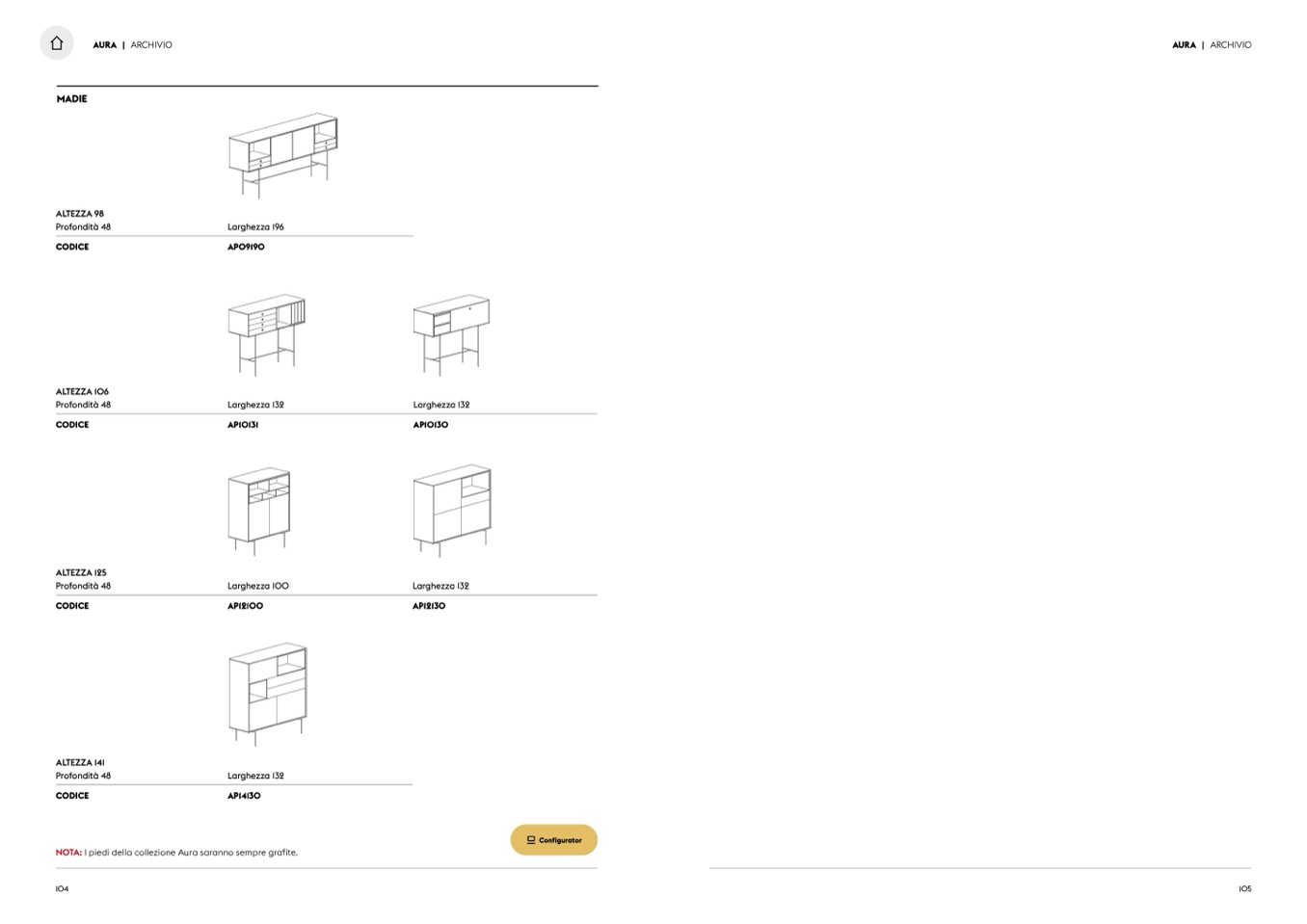 NOTA: I piedi della collezione Aura saranno sempre grafite.
