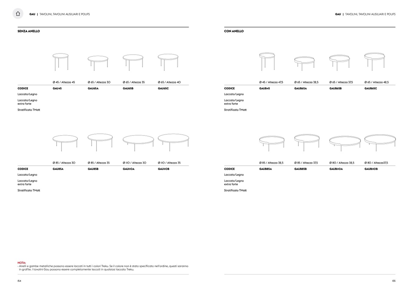in grafite. I tavolini Gau possono essere completamente laccati in qualsiasi laccato Treku.