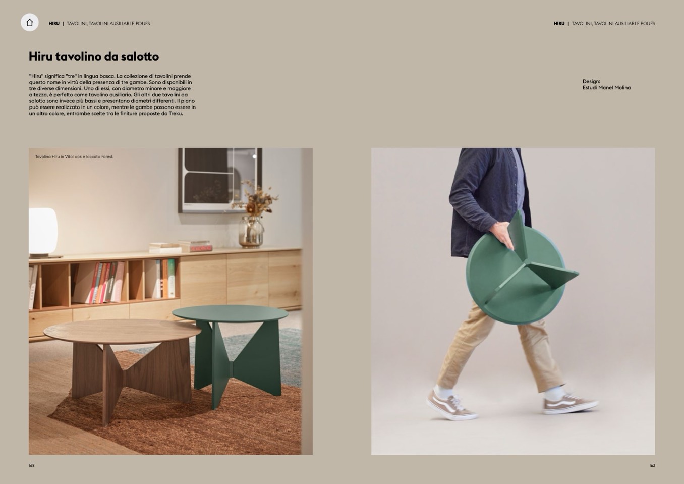 "Hiru" significa "tre" in lingua basca. La collezione di tavolini prende