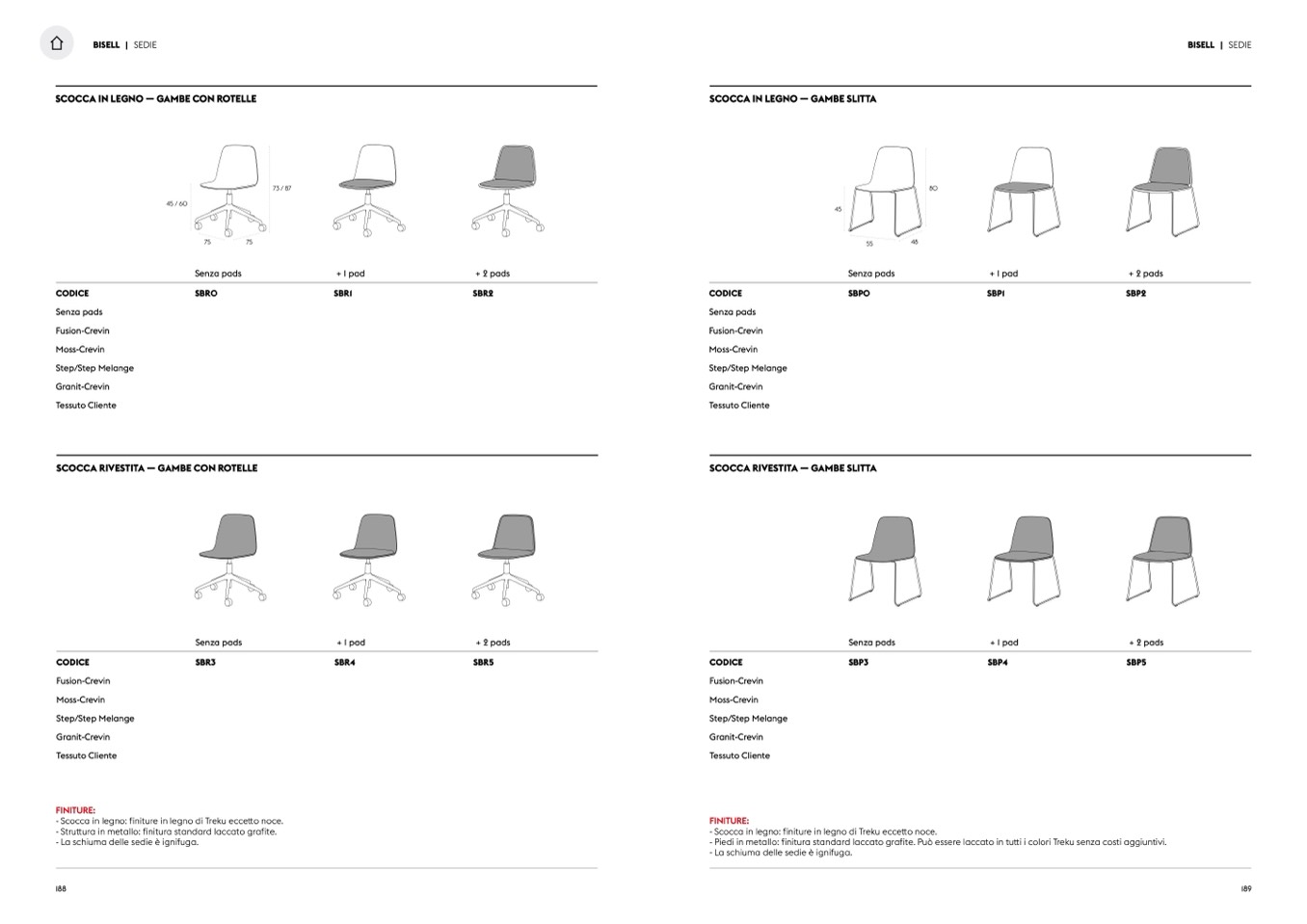 - Scocca in legno: finiture in legno di Treku eccetto noce.