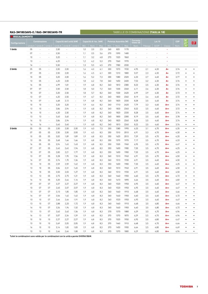 TABELLE DI COMBINAZIONE (TAGLIA 18)