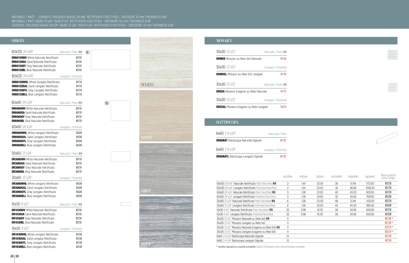 NATURALE / MATT 30x60 12”x24” 10x30 4”x12” RETTIFICATO I RECTIFIED - SPESSORE 9,5 mm THICKNESS 0.38”