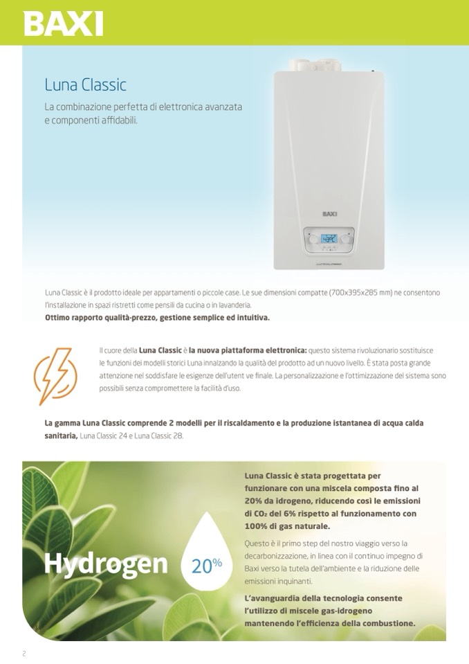 La gamma Luna Classic comprende 2 modelli per il riscaldamento e la produzione istantanea di acqua calda