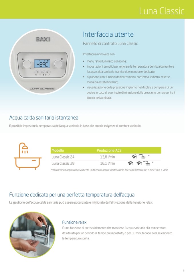 È possibile impostare la temperatura dell’acqua sanitaria in base alle proprie esigenze di comfort sanitario: