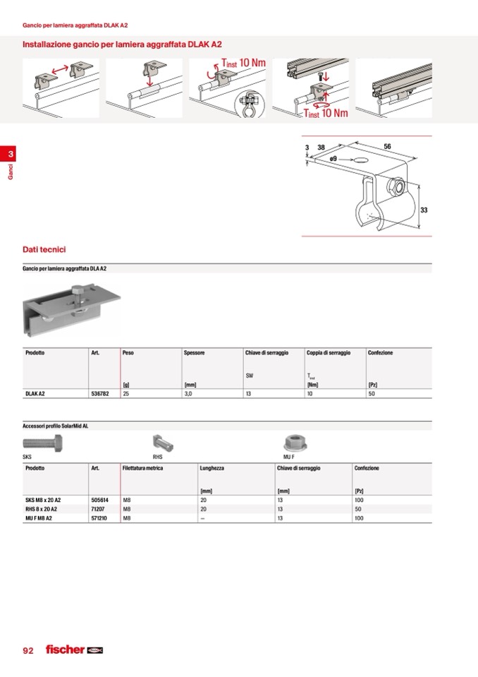 Gancio per lamiera aggraffata DLA A2