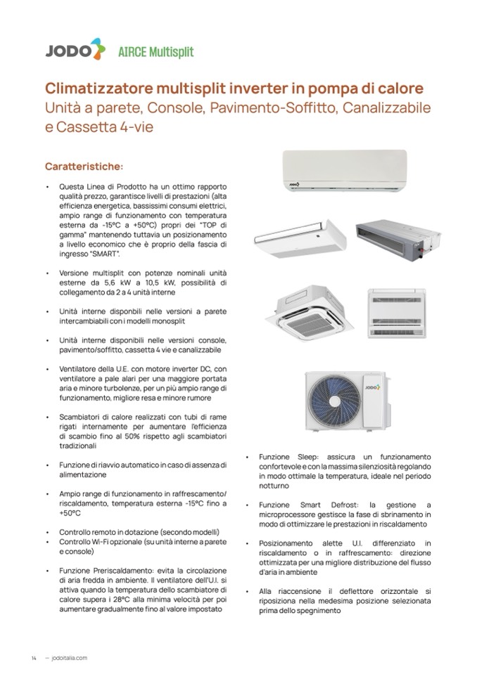 • Versione multisplit con potenze nominali unità