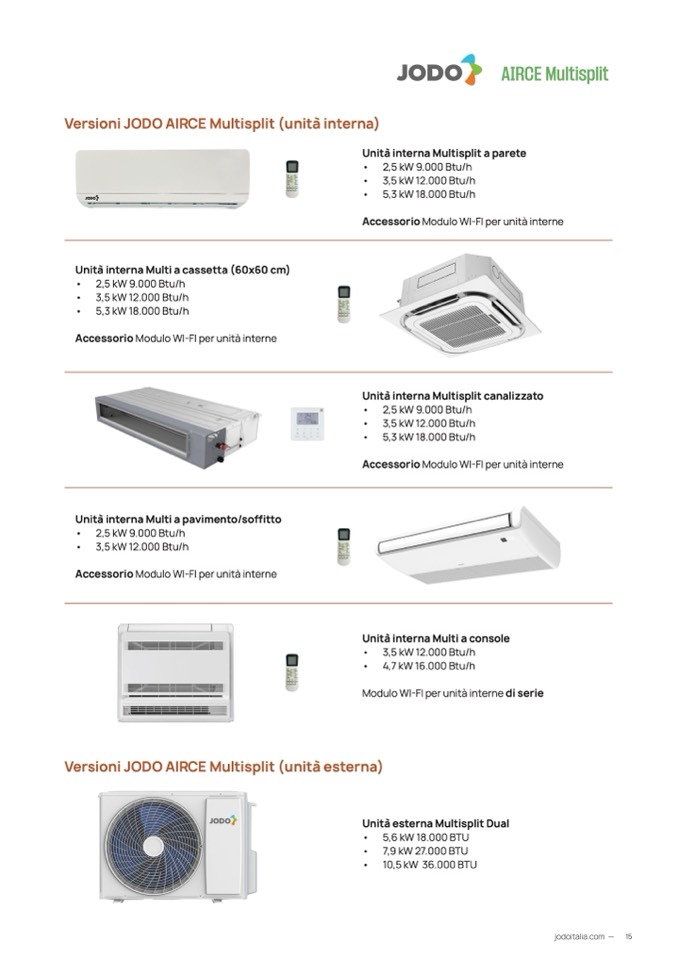 Versioni JODO AIRCE Multisplit (unità interna)