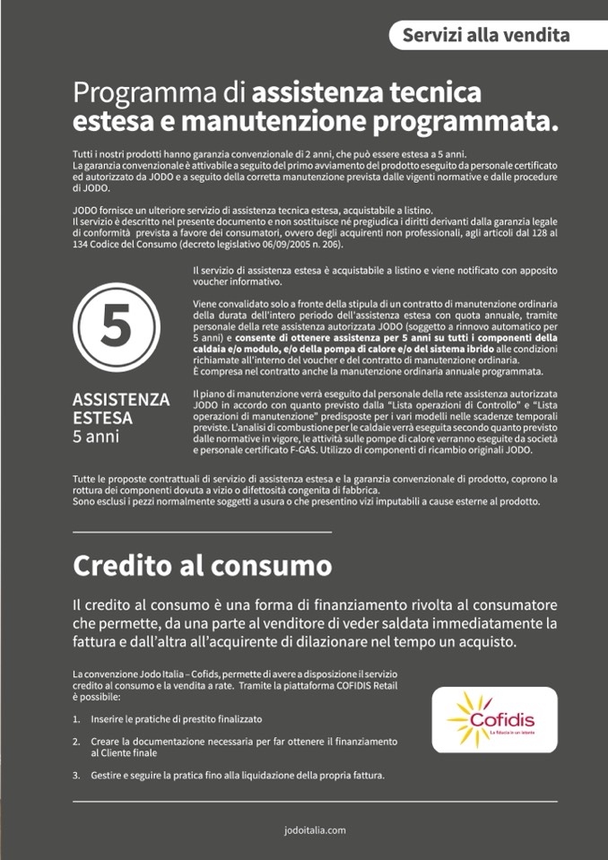 JODO fornisce un ulteriore servizio di assistenza tecnica estesa, acquistabile a listino.