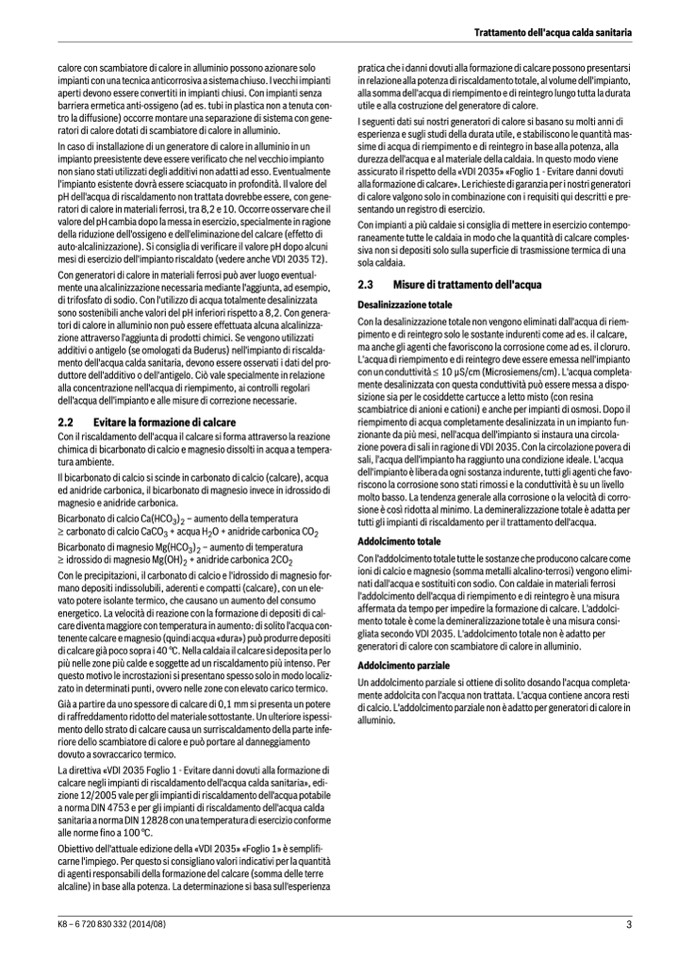 gliata secondo VDI 2035. L'addolcimento totale non è adatto per