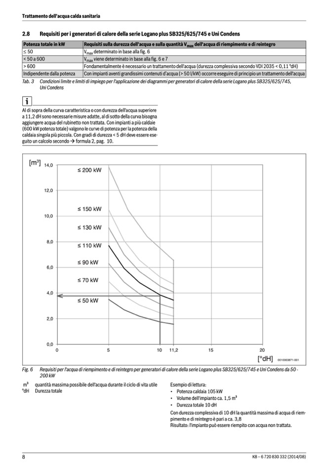 Requisiti per l'acqua di riempimento e di reintegro per generatori di calore della serie Logano plus SB325/625/745 e Uni Condens da 50 -