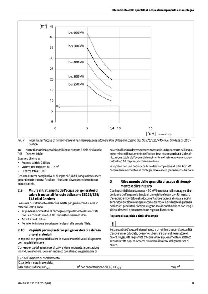 Requisiti per l'acqua di riempimento e di reintegro per generatori di calore della serie Logano plus SB325/625/745 e Uni Condens da 200 -