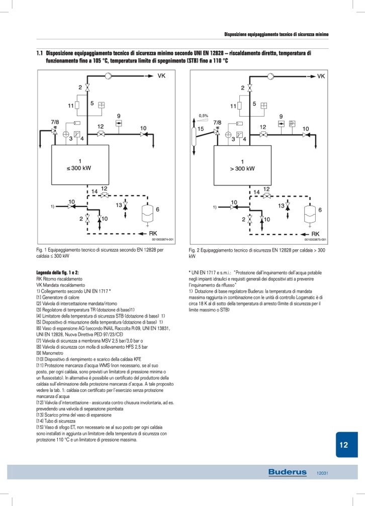 Fig. 2 Equipaggiamento tecnico di sicurezza EN 12828 per caldaia > 300