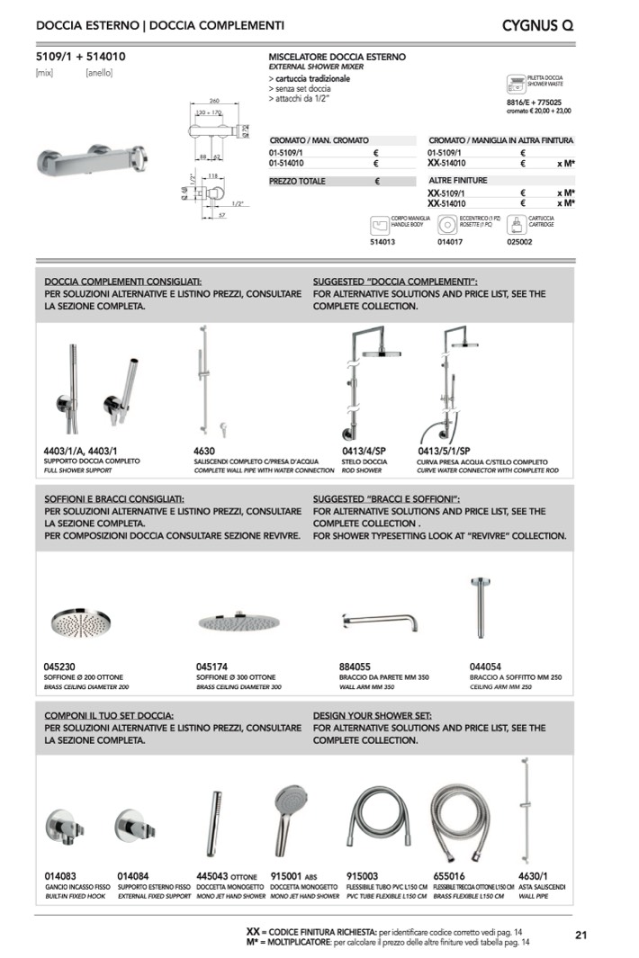 : per calcolare il prezzo delle altre finiture vedi tabella pag. 14