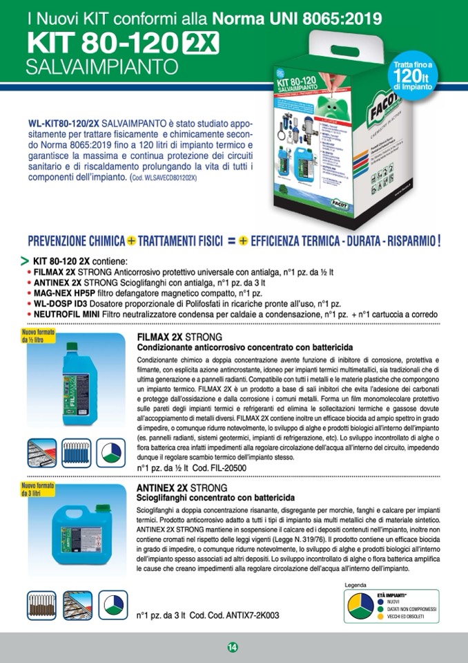 filmante, con esplicita azione antincrostante, idoneo per impianti termici multimetallici, sia tradizionali che di