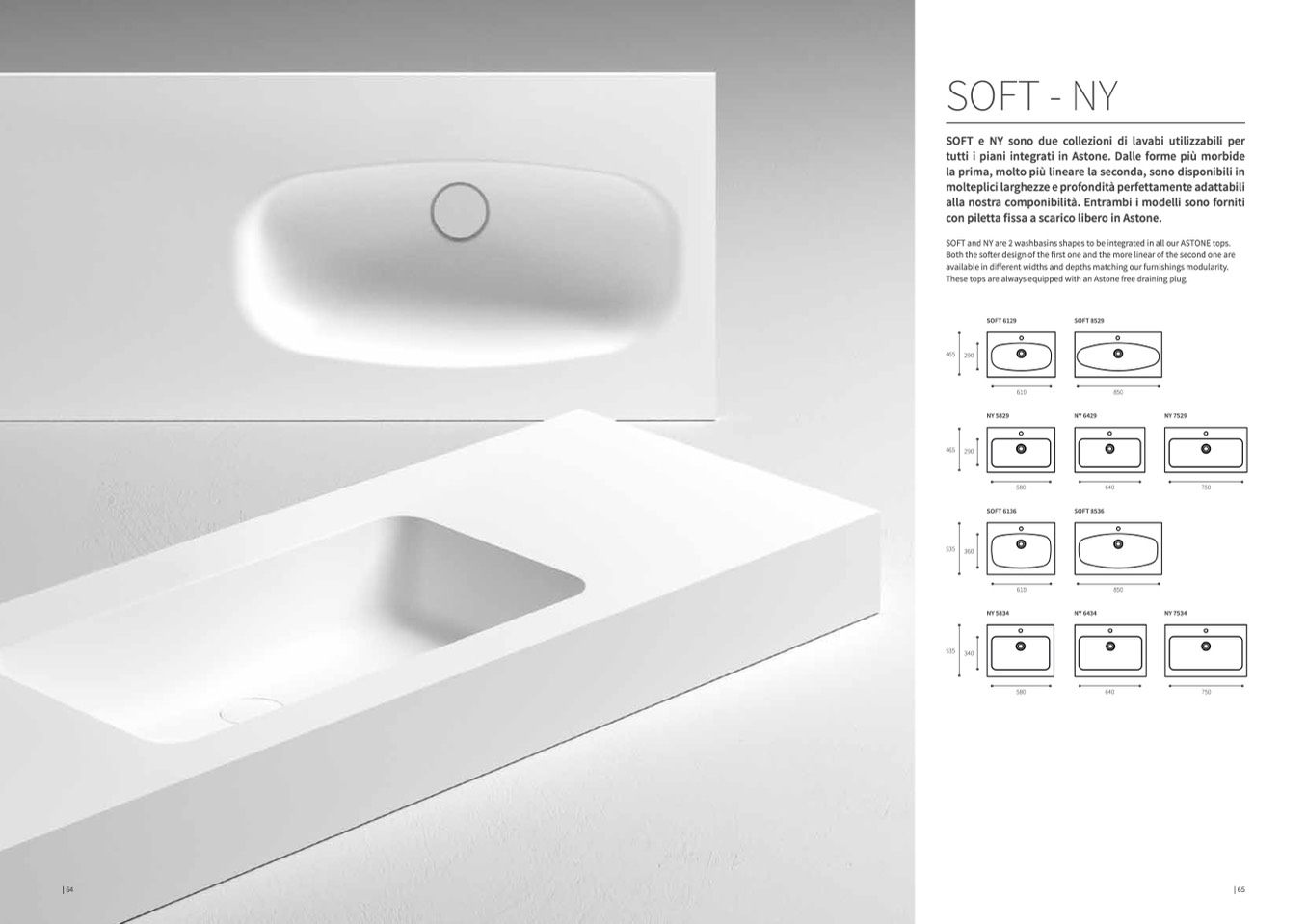 SOFT and NY are 2 washbasins shapes to be integrated in all our ASTONE tops.