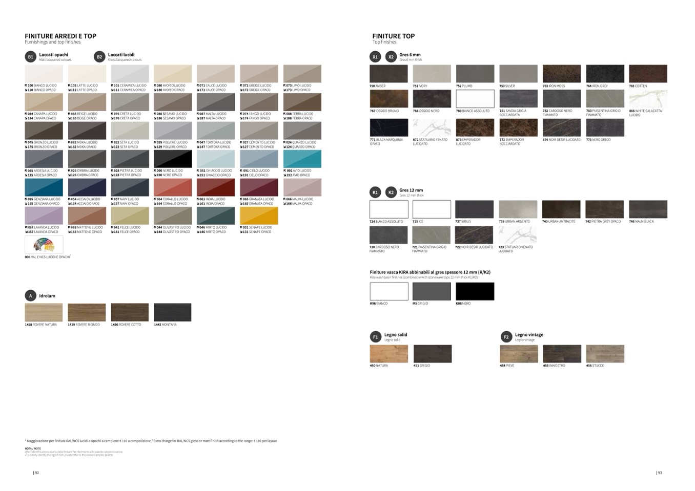• Per l’identificazione esatta delle finiture, far riferimento alle palette campioni colore.