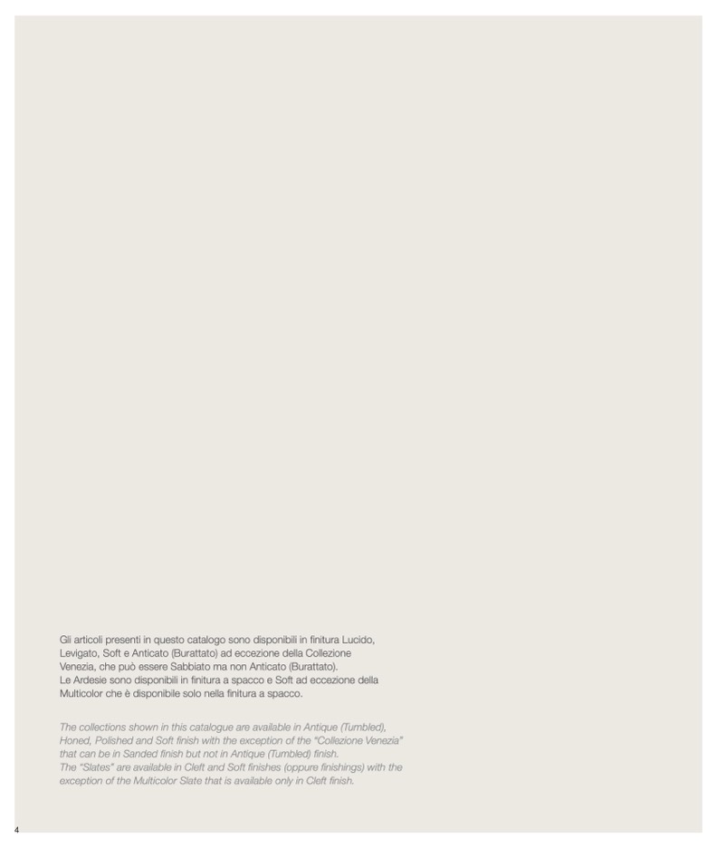 Honed, Polished and Soft finish with the exception of the “Collezione Venezia”