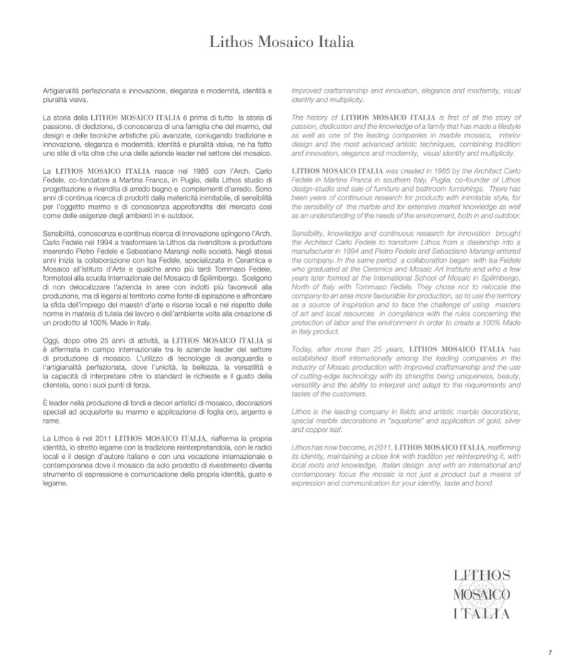 Lithos has now become, in 2011, Lithos Mosaico itaLia, reaffirming