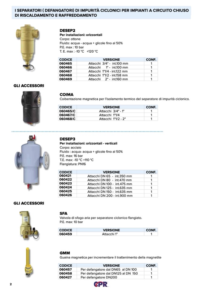 Valvola di sfogo aria per separatore ciclonico flangiato.