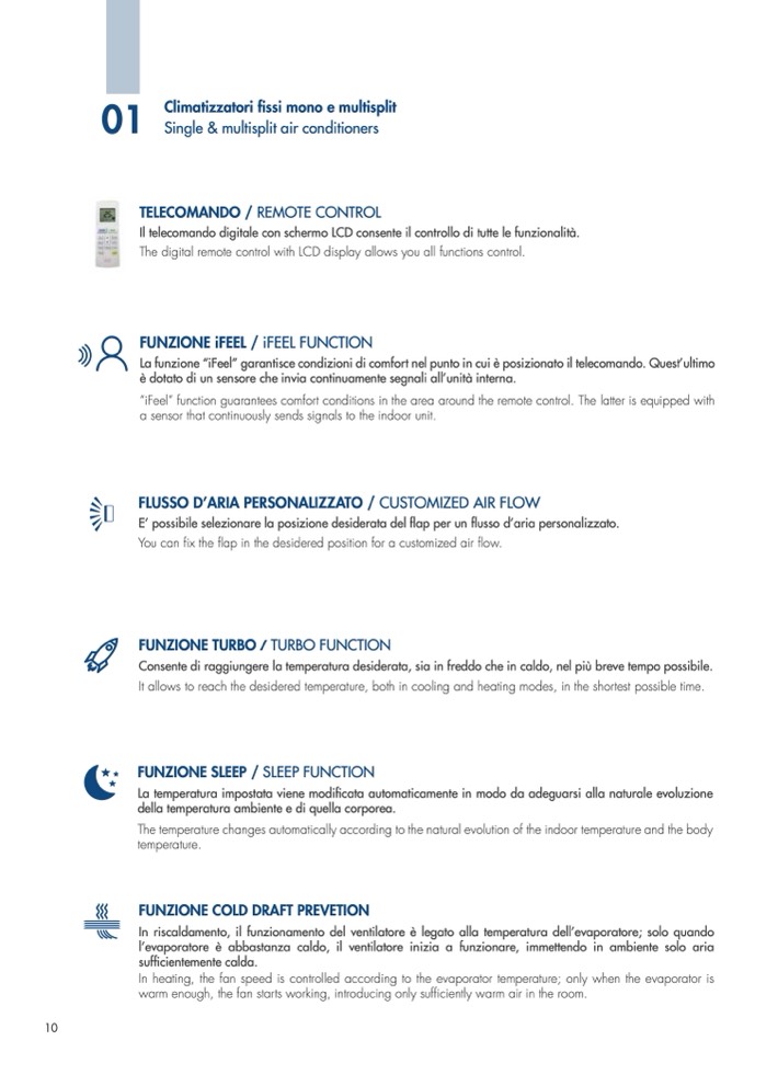 “iFeel” function guarantees comfort conditions in the area around the remote control. The latter is equipped with