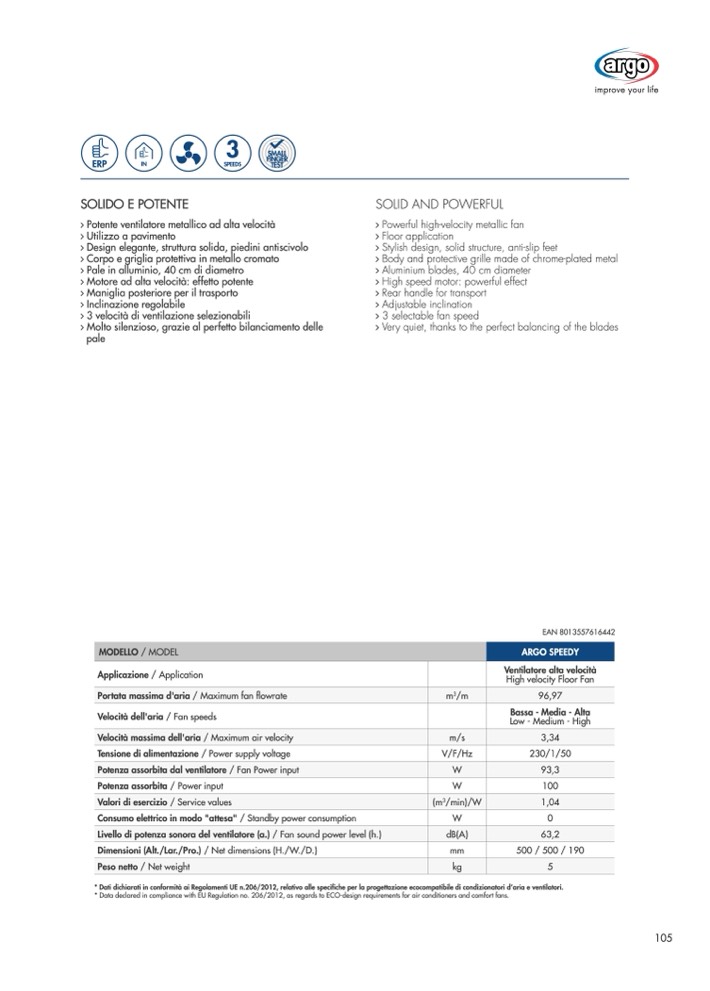 * Dati dichiarati in conformità ai Regolamenti UE n.206/2012, relativo alle specifiche per la progettazione ecocompatibile di condizionatori d’aria e ventilatori.