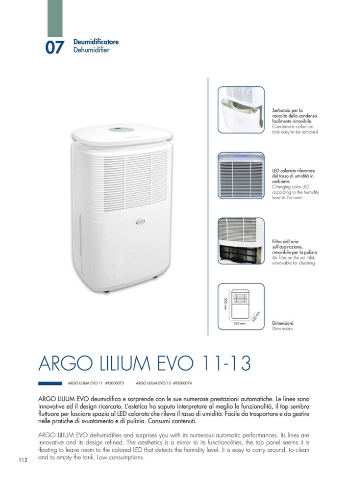 ARGO LILIUM EVO dehumidifies and surprises you with its numerous automatic performances. Its lines are
