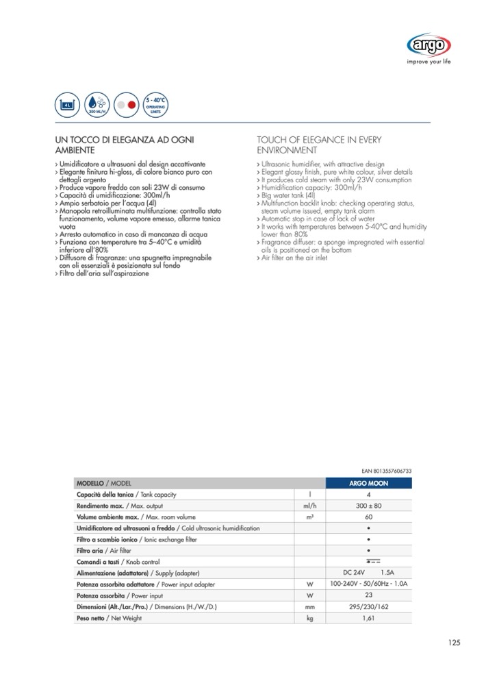 Umidificatore ad ultrasuoni a freddo / Cold ultrasonic humidification
