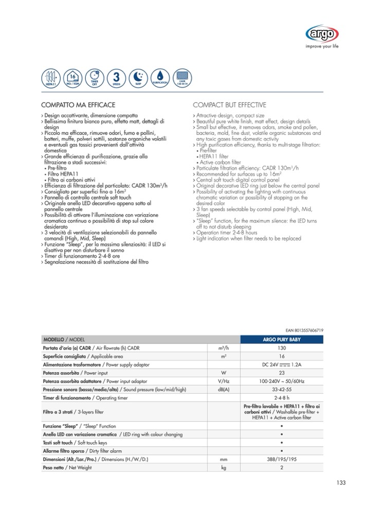 Pre-filtro lavabile + HEPA11 + filtro ai