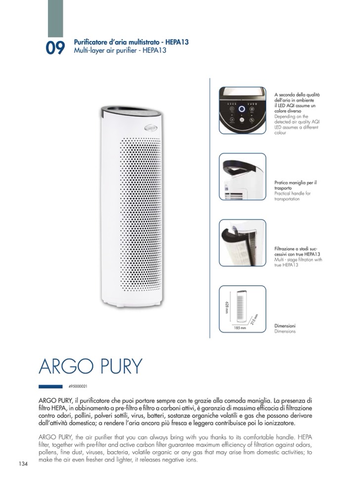 ARGO PURY, il purificatore che puoi portare sempre con te grazie alla comoda maniglia. La presenza di