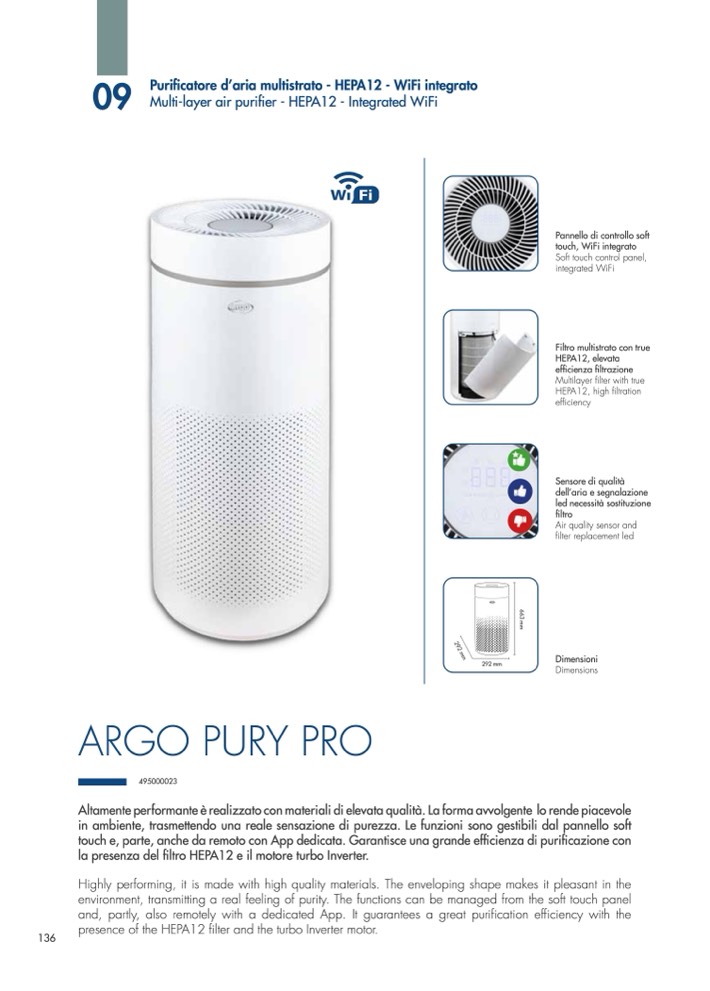 and, partly, also remotely with a dedicated App. It guarantees a great purification efficiency with the
