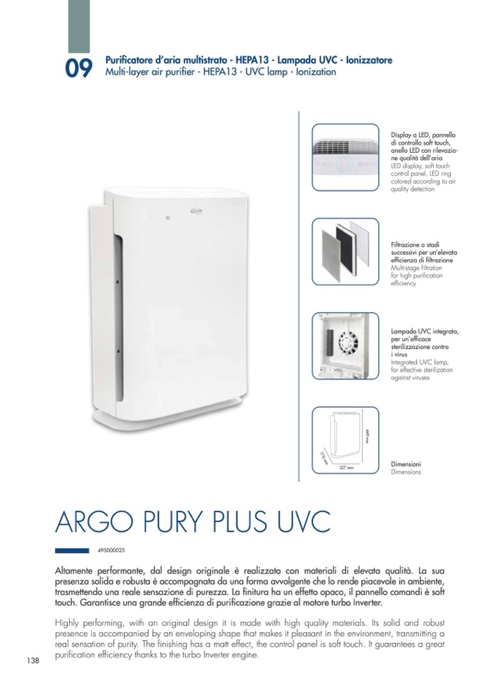 Purificatore d’aria multistrato - HEPA13 - Lampada UVC - Ionizzatore