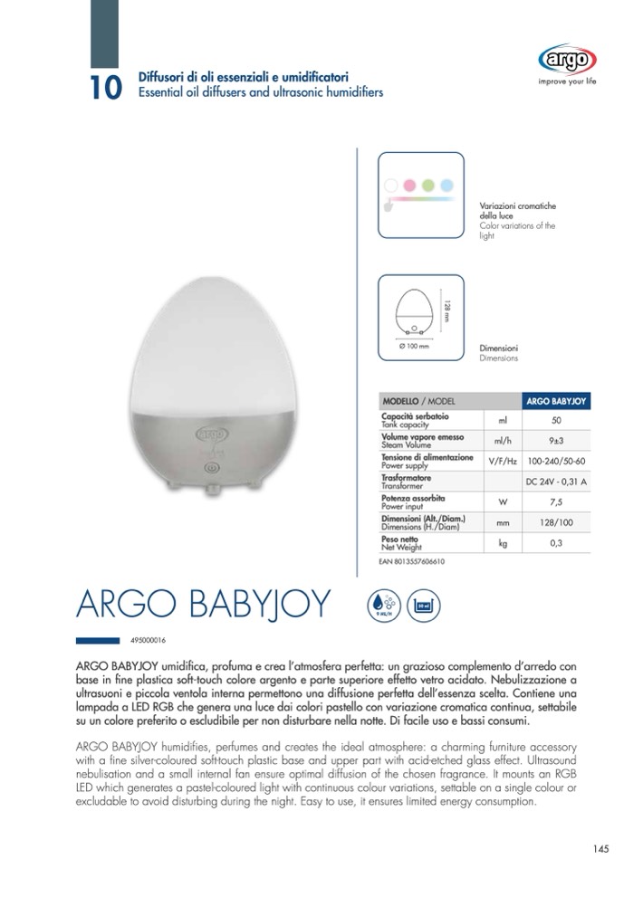 ARGO BABYJOY umidifica, profuma e crea l’atmosfera perfetta: un grazioso complemento d’arredo con
